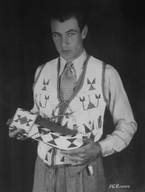 Années 20. Né dans le Montana, Gary est encore Frank James Cooper. Il s’entiche du ‘lazy stitch’, un motif et une méthode de perlage principalement utilisés par les Amérindiens des plaines centrales. Plus tard, il confectionnera des vêtements pour sa fille et pour lui-même, coupant et cousant le cuir : ‘ses propres mocassins indiens, qu'il aimait porter à la maison’. Afin que les chaussures lui aillent bien, il les trempe dans de l'eau chaude et les laisse sécher autour de ses pieds. En 1936, il conçoit une maison.