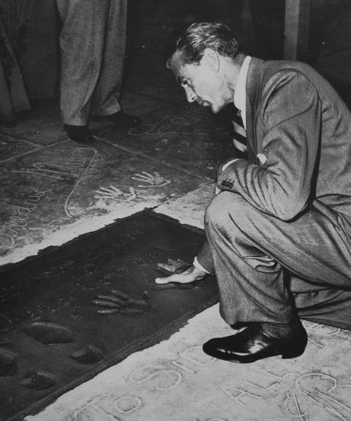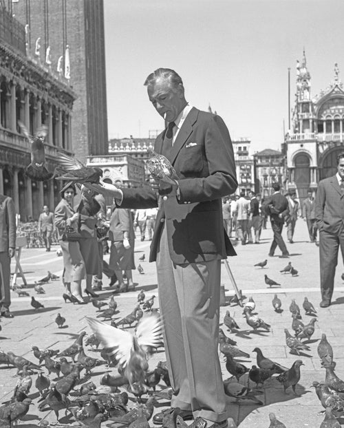 1936. Il vend des enseignes électriques, des rideaux de théâtre: on lui donne une chance. Nan Collins, son agent, lui fait prendre le nom de sa ville natale : Gary. 1,90 m, taille étroite et épaules larges, ses costumes sont ses vêtements. Dans Desire, les pantalons sont ajustés et amples, drapés à l'anglaise sur un corps américain.
