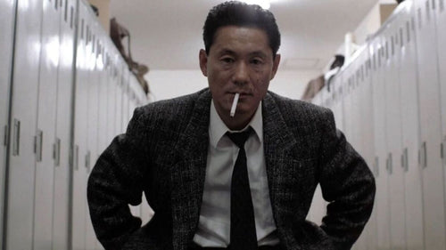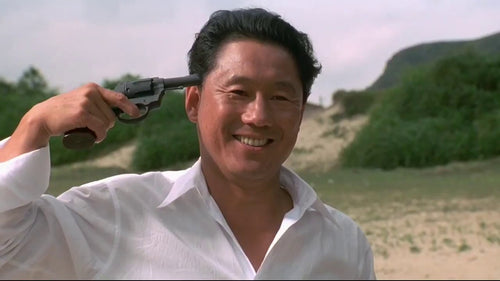La réalisation sied à son goût du retrait. Kitano cautérise l’émotion, réduit le récit, affine le dialogue. Voix rauque, lèvres serrées: dans Sonatine, son personnage se suicide avec un rictus. Son visage et ses vêtements deviennent dès lors la manière de le lire. Dans Violent Cop, une veste de tweed grise, noire, et blanche aux revers bas et crantés s'abîme de poursuite en poursuite; dans Boiling Point, une chemise à fleurs et une veste rayée à double rayure défont la froideur du personnage; dans Sonatine, une chemise blanche.