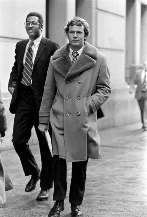 Les vêtements des traders de la seconde moitié des années 70 sont ainsi une réinterprétation de la mode edwardienne. Les chemises à col contrasté se parent de larges rayures jaunes, roses ou mauves. Les coupes amples et généreuses annoncent déjà le power-suit et les épaules spectaculaires des années 80. Le pading des épaules structure la silhouette de son porteur, et lui donne plus de carrure afin de s’imposer dans le monde des affaires.