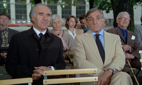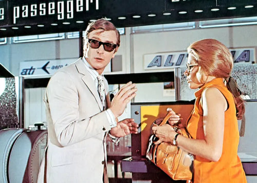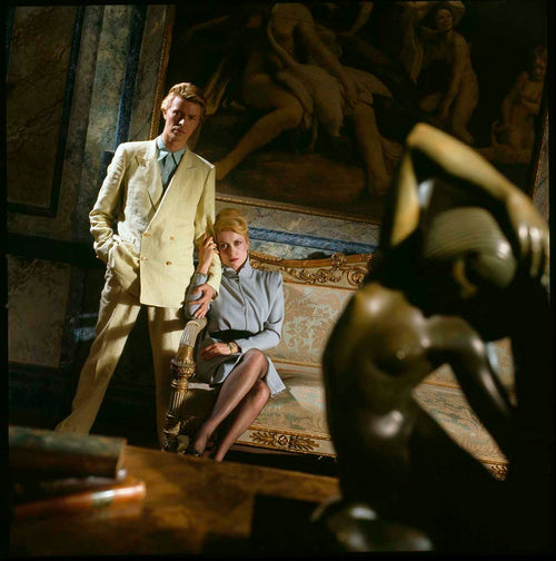 Le costume beige a souvent été utilisé au cinéma afin de mettre en valeur les personnages principaux. Lino Ventura porte un costume en lin beige dans La 7ème cible (1982) et un autre en gabardine de laine dans Espion Lève-toi (1984). L'acteur conserve la même recette : chemise bleu gendarme ou bleu ciel, cravate en tricot de soie noire.