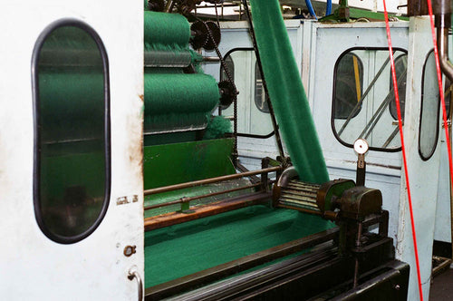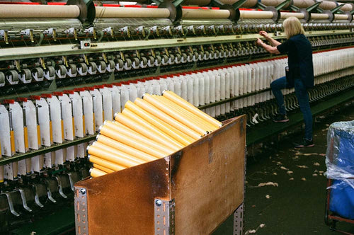 L’usine Johnstons of Elgin est la seule filature d’Écosse à conserver une production verticale totalement intégrée : la filature maitrise le processus de production de ses tissus de bout en bout. Teinture des fibres, tissage, cardage et filage, chaque étape se déroule dans la même usine. Les machines informatisées côtoient celles bicentenaires dans un tout organique d’innovation et d’authenticité.