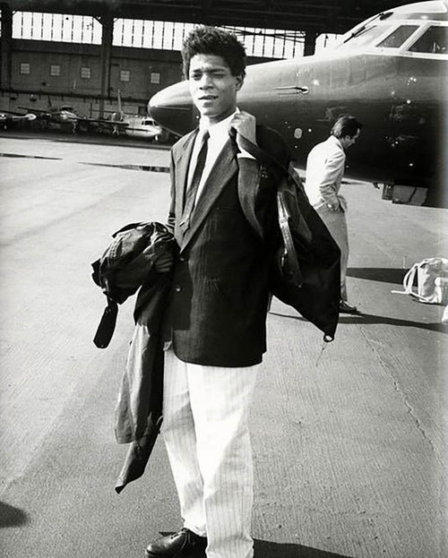 Just as he had reconciled two artistic worlds that, until then, had only evolved separately from each other, Basquiat put together a priori contradictory articles of clothing : suits with sneakers, a sweatshirt or a creased shirt, a jacket with mismatched pants and a clashing tie - combinations that were then unexpected but always a success.