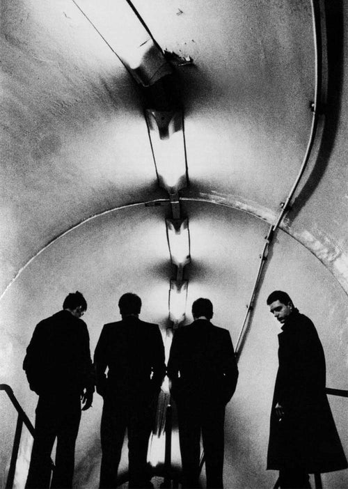 For the trouser: two options: dark jeans or dark twill trousers. Straight cut, flat front. Shirts tucked into waistbands, silhouettes sealed with slim leather belts. A strapped-up stance for all.