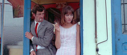This is Godard at his most colourful and perhaps most feminine. Orange, mustard, and green panels dominate the screen. Everyone looks like a dressed-down version of Mick Jagger, with his patent leather Jodhpur boots and shirt buttons open down to the waistline. The film’s aesthetics have been described as “French Mod”: extensive collars on structured shirts, a bit of flair here and a touch of paisley there. Godard arrived on set with a three-button suit with a roll lapel, three fountain pens carefully aligned in his chest pocket.