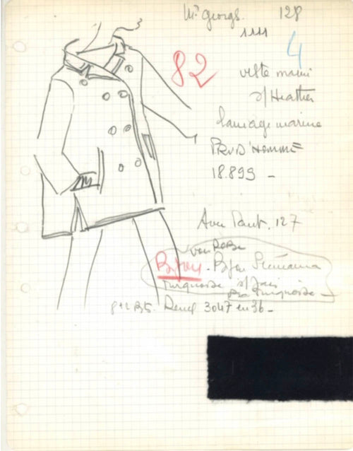 In 1962, Yves Saint Laurent, who had a habit of drawing on military clothing, turned the pea coat into a luxurious piece. It is inspired by the French peacoat and retains the golden buttons, but opts for a finer and more precious woolen cloth.