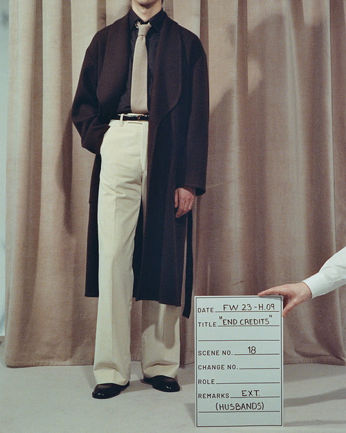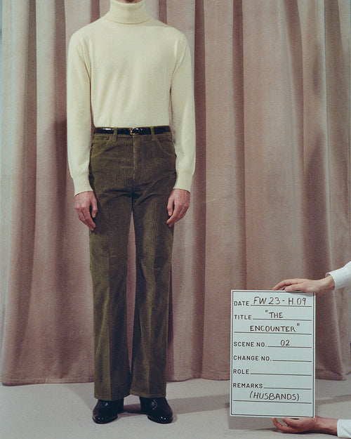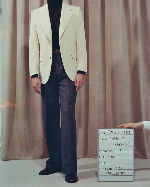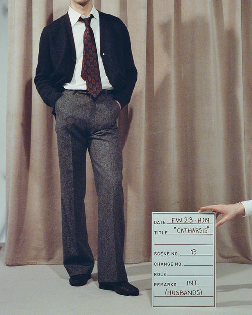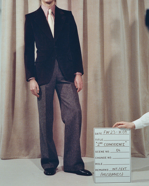 HUSBANDS 09 : A cinematic wardrobe bridging two eras, two generations, two styles: tweeds and outdoor wools, velvets and jewel tones, denim and cashmere, allowing everyone to create their own interpretation.