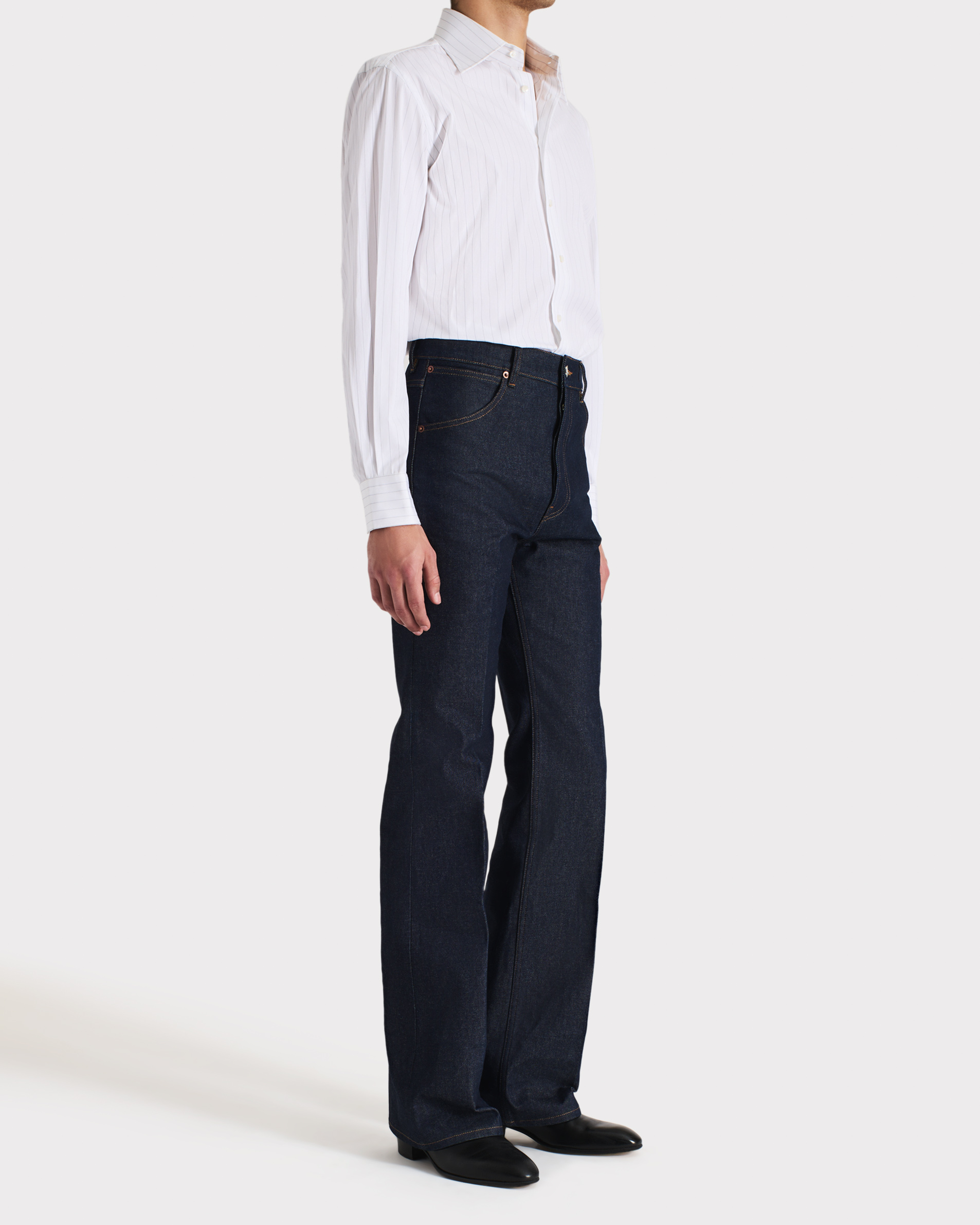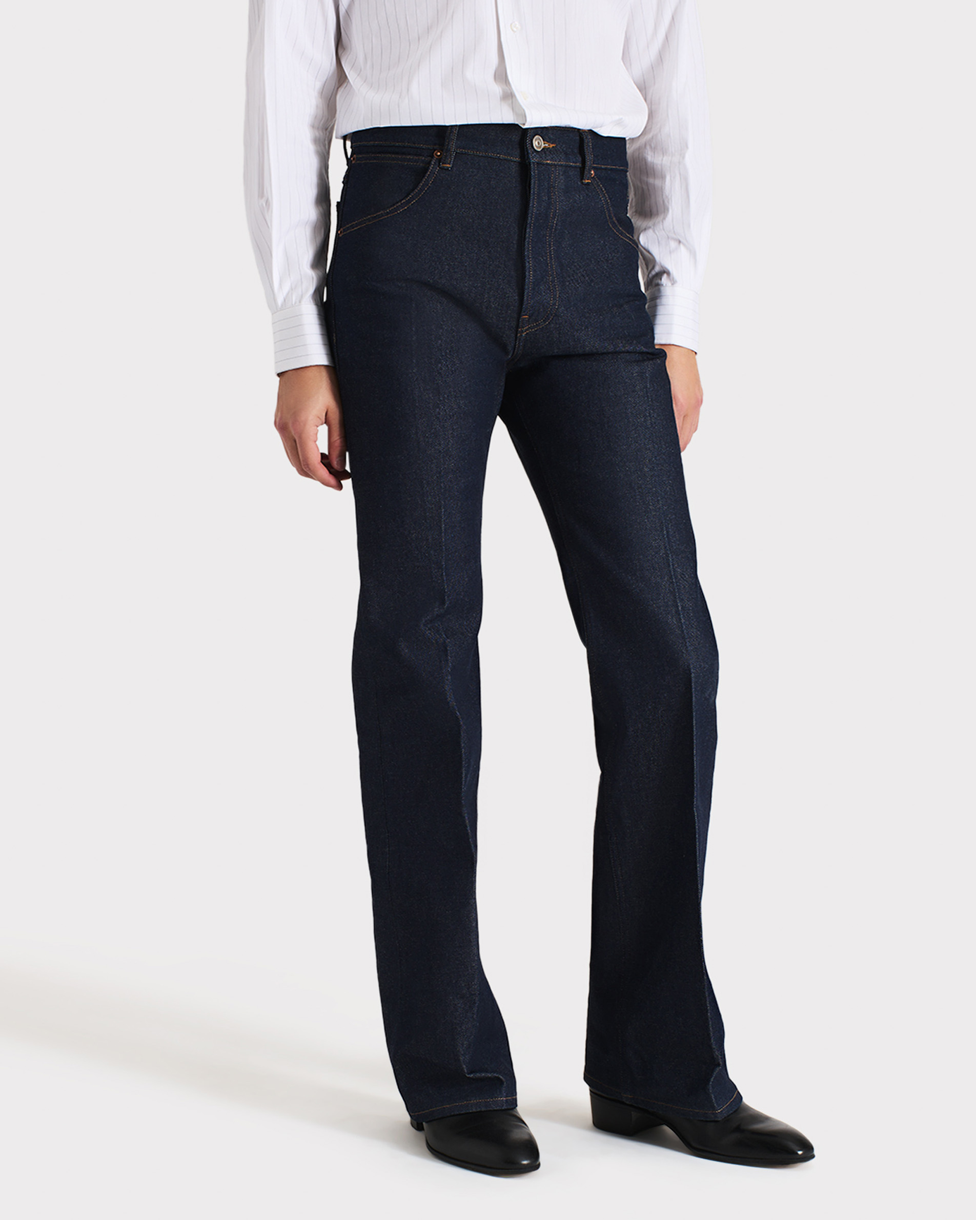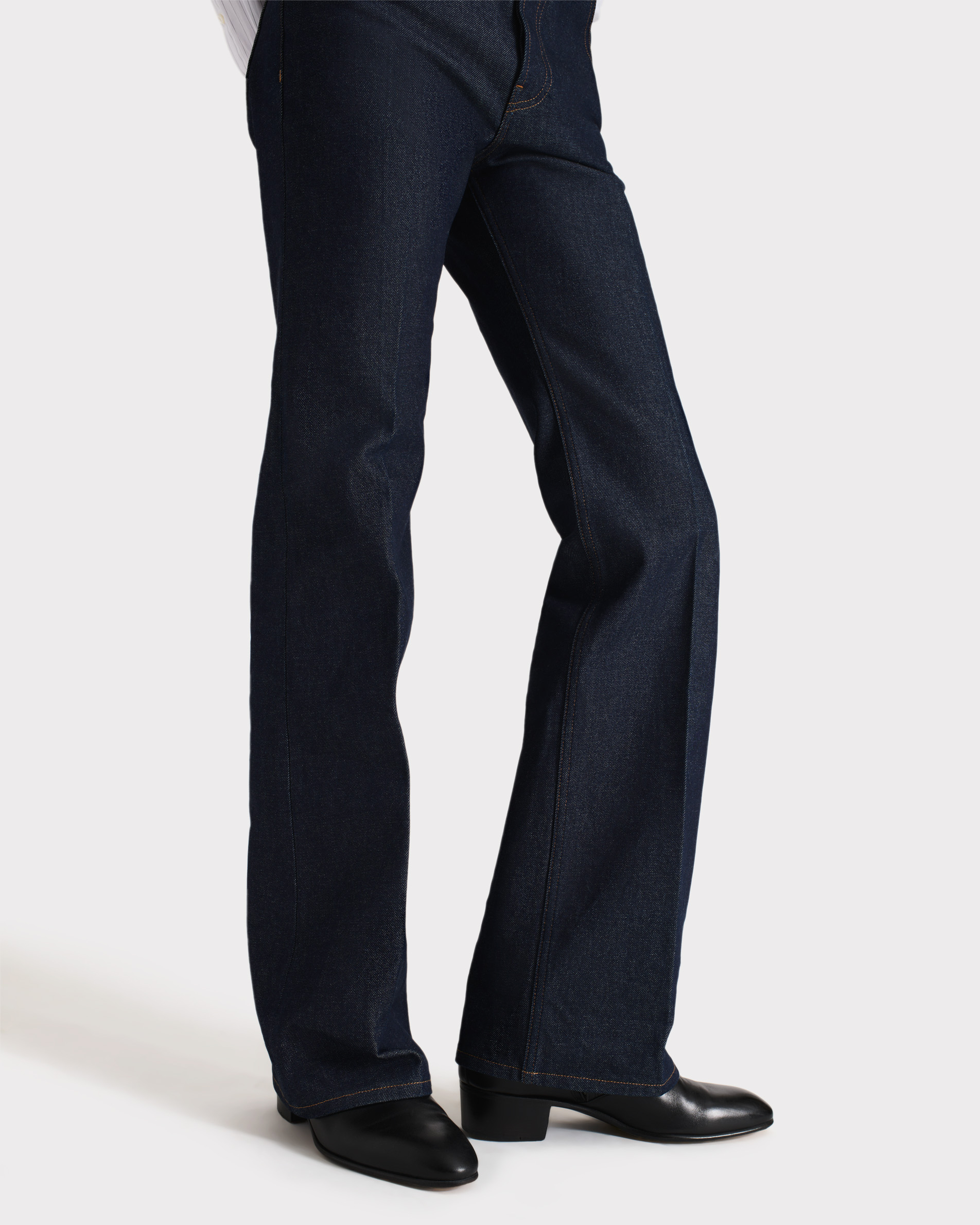 high-waisted jeans, flared leg, in Japanese cotton denim