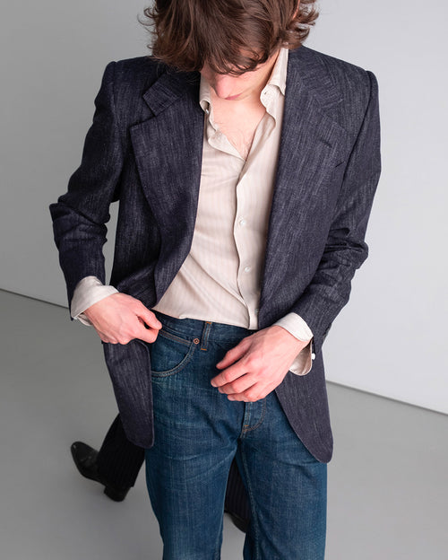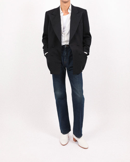 VESTE DE SMOKING CROISÉE EN LAINE VIERGE ET VISCOSE - NOIRE